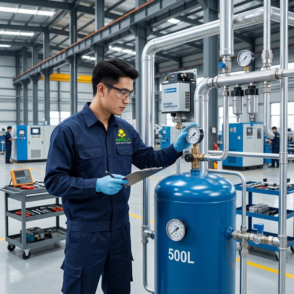 Nếu xưởng bạn cần kiểm tra rò rỉ, tư vấn lắp đặt hoặc bảo trì hệ thống khí nén, hãy liên hệ BeeCa để được hỗ trợ tại Huế.